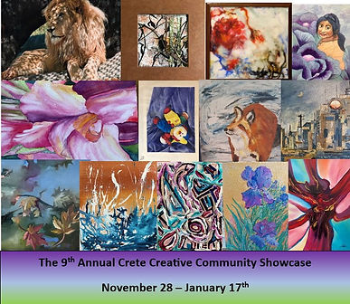 In 2024, Crete Creative began our close partnership with the Crete Public Library for exhibition and event space. This change has been welcomed warmly by the community we love so much and the artists who make our organization possible. As 2025 draws nearer, we're proud to announce that more local partnerships are being built to spread our mission to every corner of Crete! Now, more than ever, artistic expression and education are vital for amplifying each person's voice, giving them the tools they desire to share their story and create a stronger community - together!
